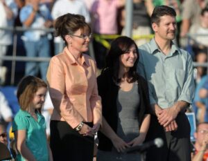 Born in Sandpoint, Idaho, and raised in Wasilla, Alaska, Palin was a standout at Wasilla High—“life-changing,” she once said of basketball—before meeting her future husband, Todd, at a game. In 1988, the high-school sweethearts eloped at the courthouse, recruiting two witnesses from the retirement home across the street because they couldn’t afford a wedding. They built a big family—Track, Bristol, Willow, Piper, and Trig—and a life rooted in Alaska’s rough-and-ready rhythm. She reported the news, helped run the family’s commercial fishing business, then leapt into politics, becoming Alaska’s youngest—and first female—governor in 2006.