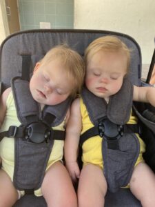 The twins arrived two months before their due date, so they had to spend several weeks in the NICU before they came home.